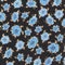 - Blue flower print on black background