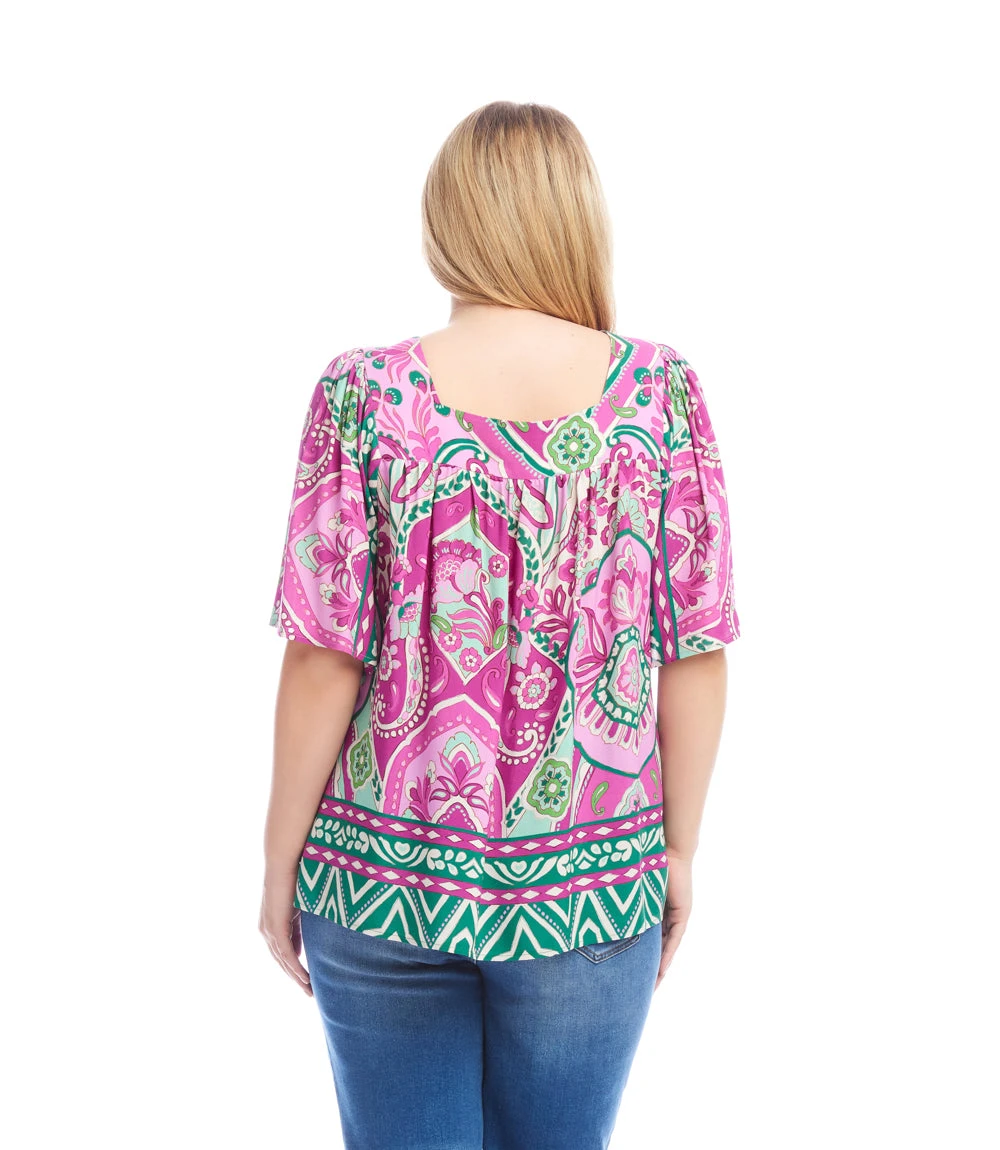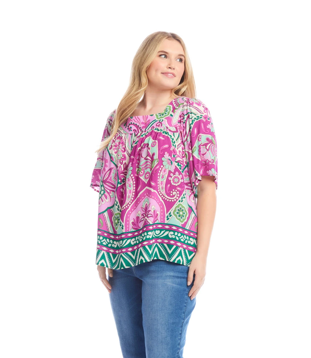 SKU: A2FYZ 8124421832890 Category: Tops Tags: Also_available_pn:Also Available in Petite & Standard, Audience_women, Base_color:multi, Base_color:pink, Body:0X-3X, Category:Tops, Collection_floral, Group_size:petite:petite-size-flare-sleeve-square-neck-top-2L29403P-print, Group_size:plus:plus-size-flare-sleeve-square-neck-top-2L29403W-print, Group_size:standard:flare-sleeve-square-neck-top-2L29403-print, Group:In The Garden, June_2025_mailer, Material:Viscose, Neckline:Square Neck, Occasion:Casual, Occasion:Night Out, Occasion:Work, Persistent_note:New To Sale, Plus_size, Product_family:2L29403W, Promotion_eligible, Sale_new_markdown, Shop_the_look, Shoprunner, Size-chart:apparel, Size:0X-3X, Sleeve_length:Short Sleeve, Smarttag_not_final sale, Smarttag_on_sale, Smarttag_type:top, Style_id_2L29403W, Type:Blouse, YGroup_2L29403