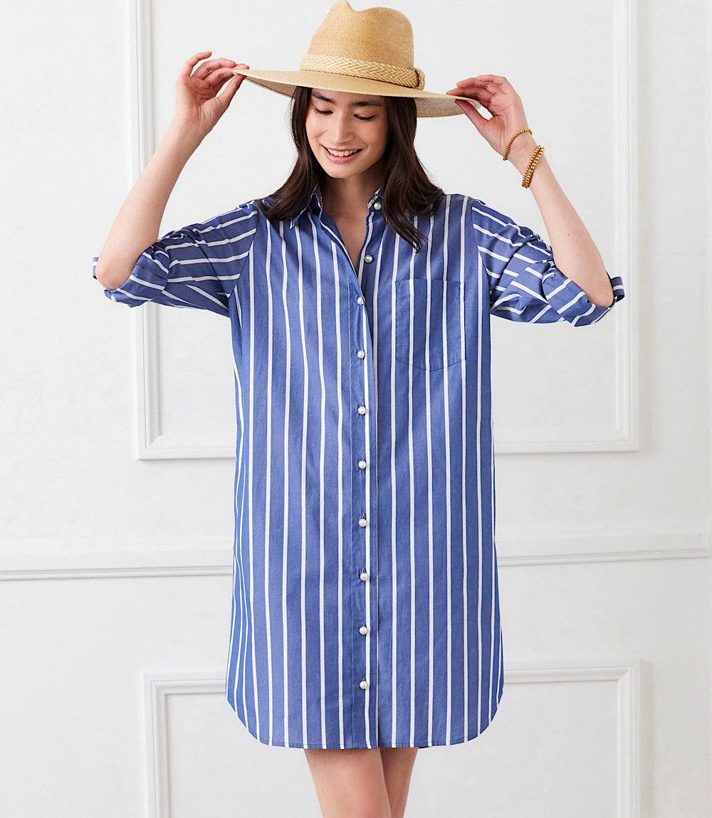Roll Tab Stripe Shirtdress