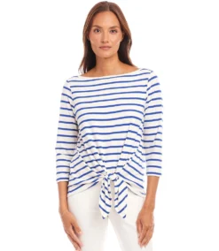 Stripe Boatneck Tie-Front Top