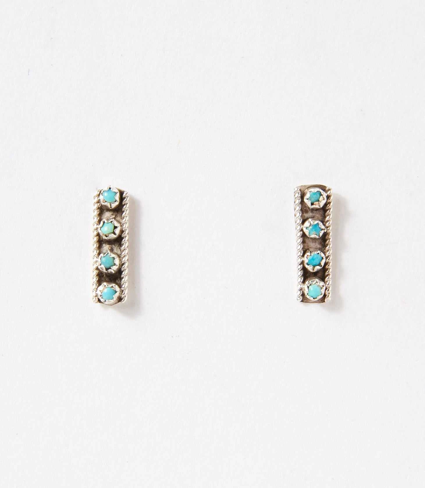 Handmade by a Navajo artist, these Bar Stud Earrings feature stunning Turquoise stones and are made with sterling silver. Each piece is uniquely crafted, making them one-of-a-kind accessories for any occasion. Elevate your style with these exquisite earrings.